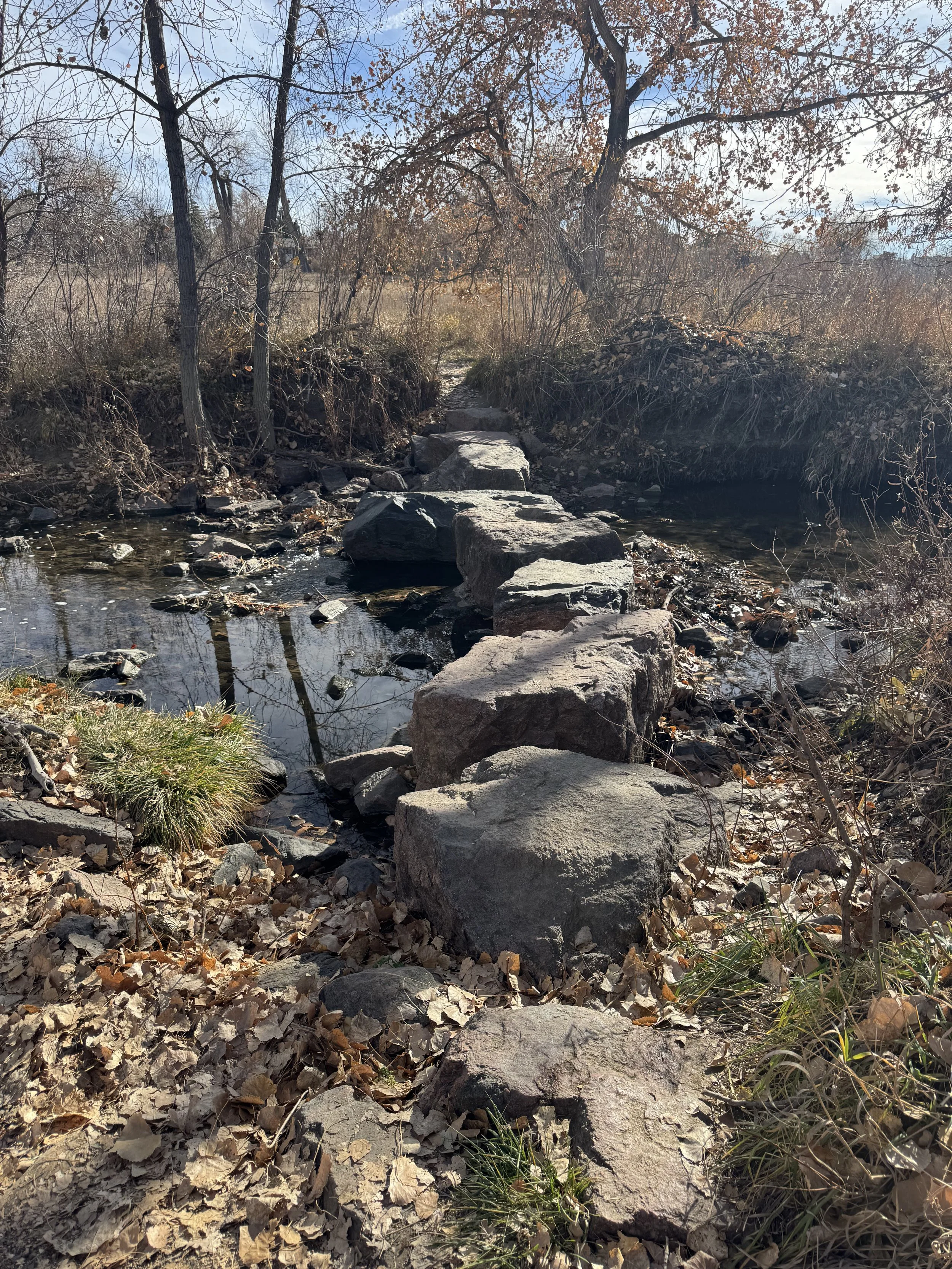 I then took the path less traveled. It’s a dirt path that I usually walk right by because it’s not on my normal route. The path skirts the water and flows through some tall grasses. It was bustling with activity from Rolly Pollys slowly making their way to the next dirt pile, to squirrels scampering up and down the Cotton Wood trees by the banks of the creek. I took in all the new sights and sounds and noticed that sometimes all it takes is a small deviation to shift my perspective entirely. It was like I was seeing the park for the first time.