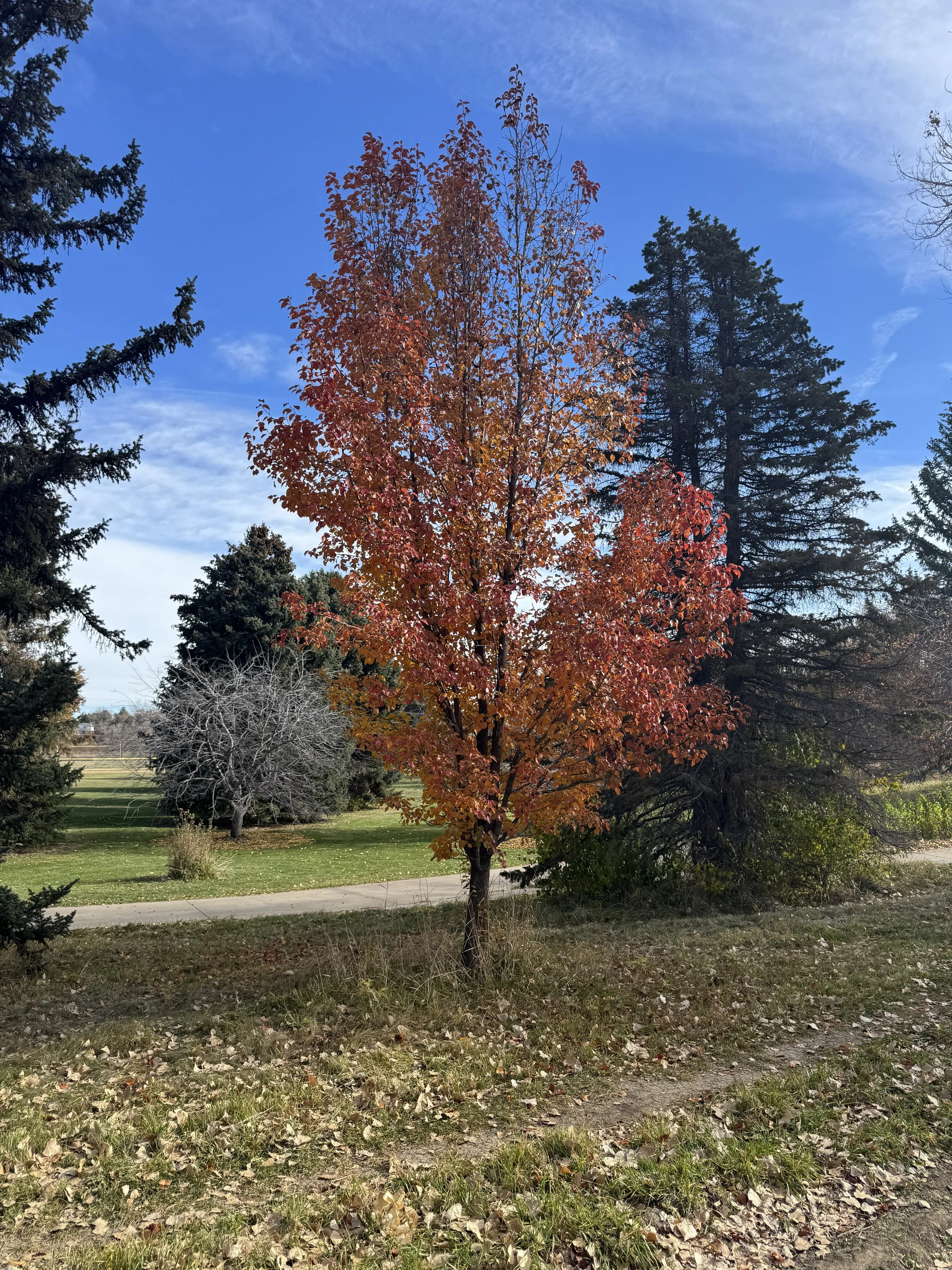 The clear sky stretched overhead in that particular shade of blue that only Colorado can give us. The trees were lit from within, or at least that's how it looked. Shades of yellow and gold and orange layered together. Leaves rustling and shaking in a light breeze that moved through the park like calming waves. The whole place seemed to shimmer with light and energy, bursting with a kind of quiet joy.