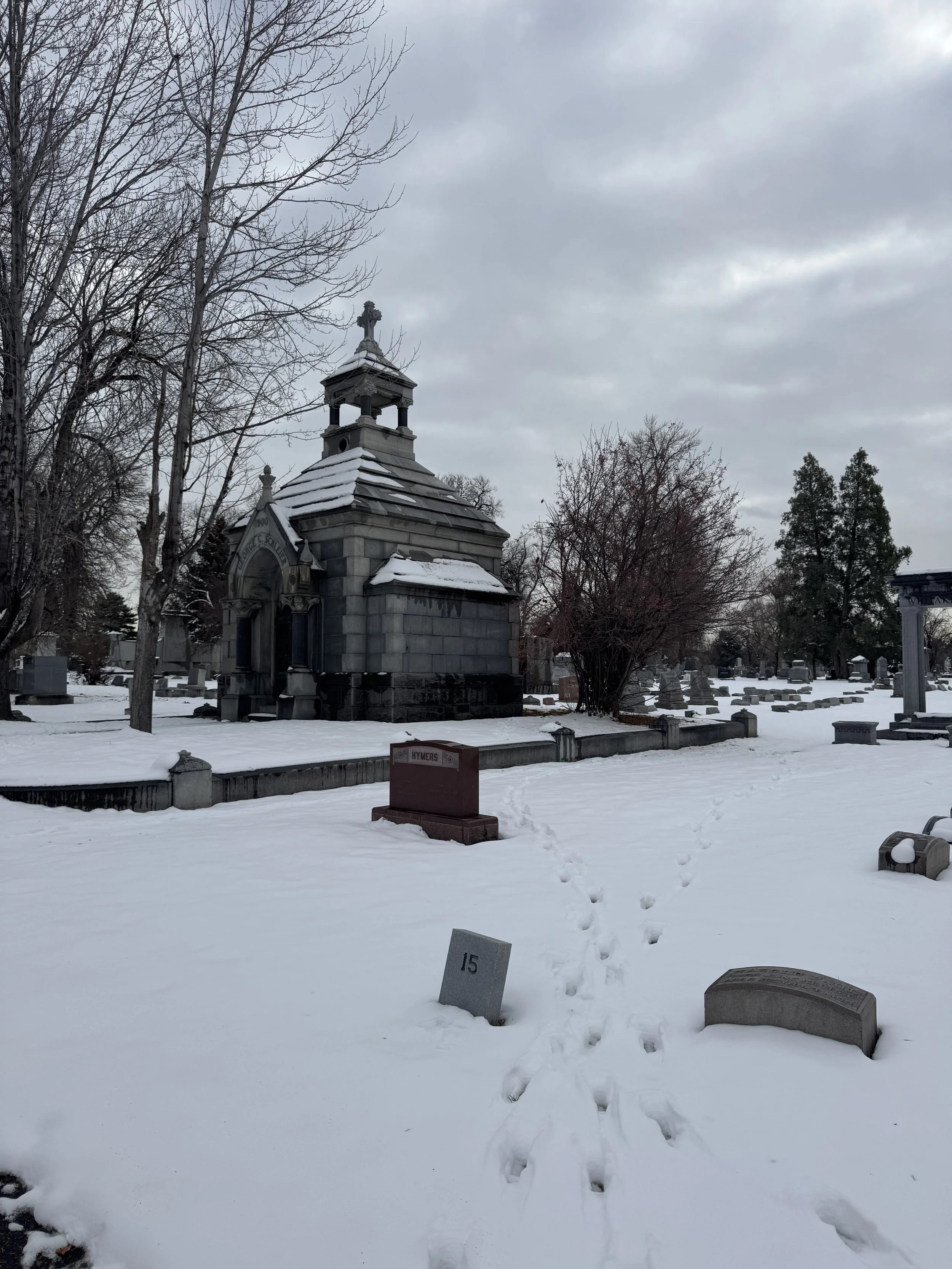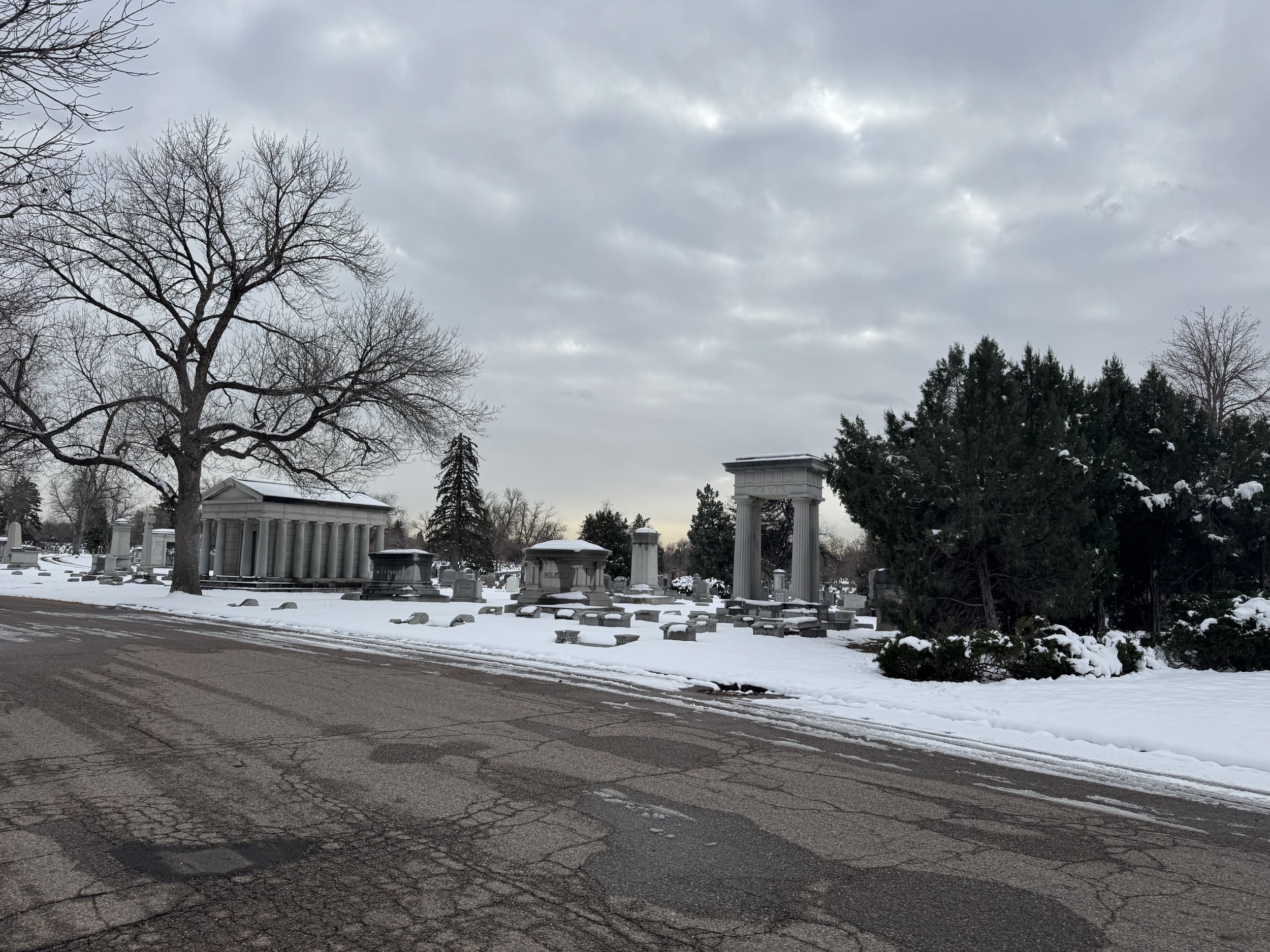 So if you're feeling curious, if you need quiet, if you're looking for a winter walk that's both calming and interesting, I encourage you to try Fairmount or any cemetery. Bring your playlist or walk in silence. Stop to read the headstones or just keep moving. Learn about Colorado history or simply notice the trees.